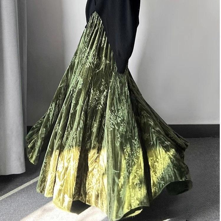 Ретро женская бархатная длинная юбка с принтом, осенне-зимняя теплая расклешенная А-силуэта — купить товар онлайн с бесплатной доставкой по всему миру!