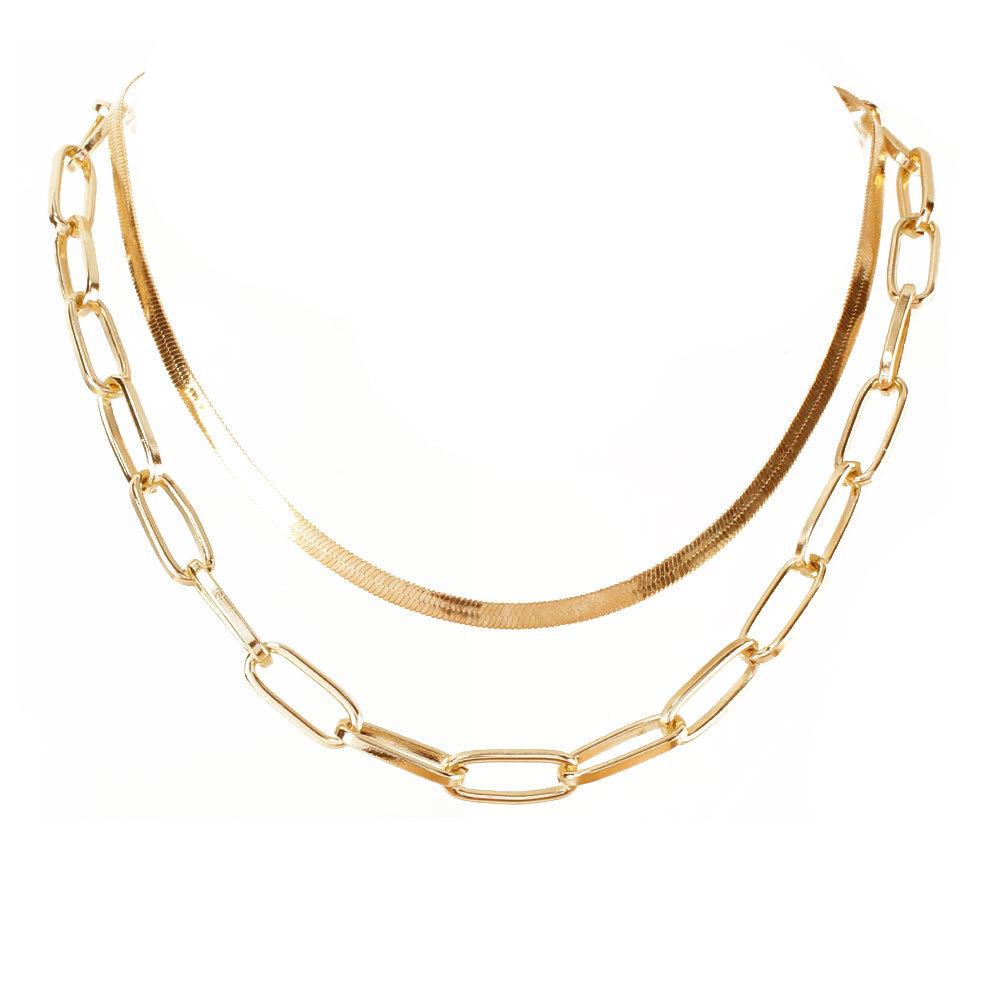 Европейские и американские украшения, двухслойная цепочка-коробка из змеиной кости, ретро простое золотое ожерелье женское 18140