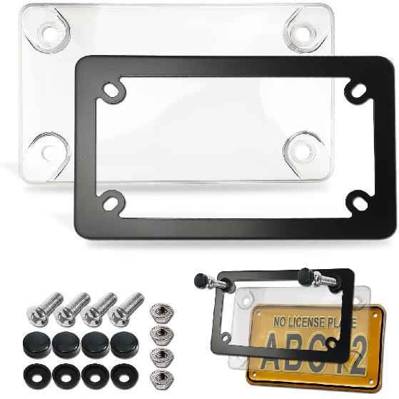 Motorcycle License Plate Covers- Bubble License Plate Protector And Black Stainless Steel Metal License Plate Frame, Unbreakable Protective Cover Is