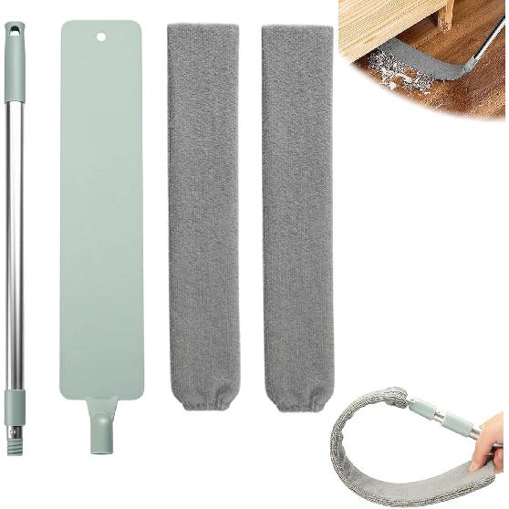 [Quick & Efficient Dust Removal] Featuring innovative split fiber technology, the flat duster for under appliances cleaning tool becomes electrostatically charged as you use it, attracting dust and hairs with ease. Use it wet or dry to get your house spick-and-span. Light-weight, sturdy and durable Microfiber Long Duster with Telescoping Pole with long handle helps you reach into corners, gap, bedside, furniture bottom and narrow spaces that hard to clean, convenient for you to clean different places