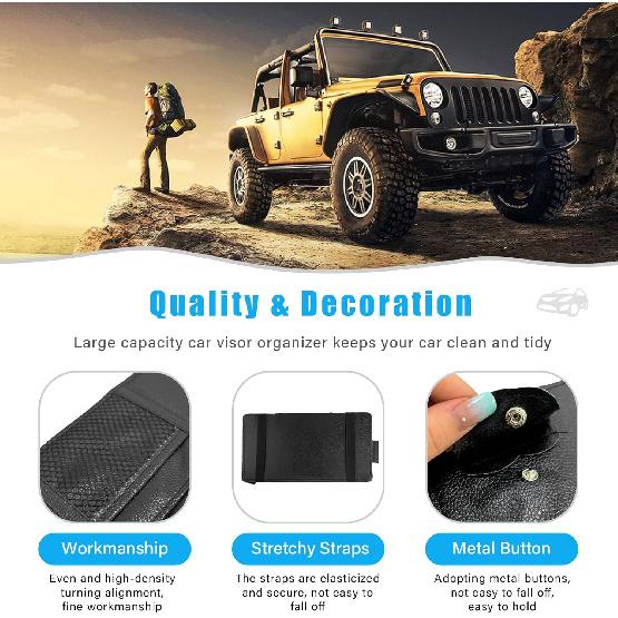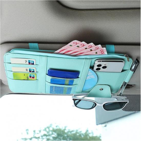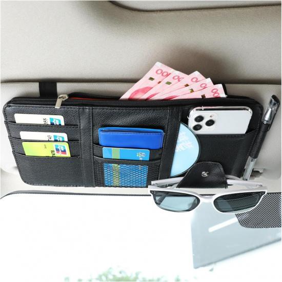 Органайзер на солнцезащитный козырек Augeny, Кожаный чехол для хранения личных вещей на молнии, Чехол для хранения на козырьке автомобиля, Держатель для солнцезащитных очков, Автомобильный интерьер
