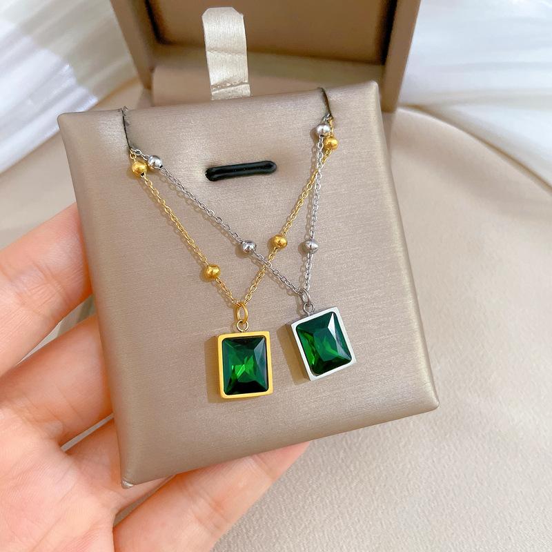 Square Emerald Minimalist Furnace Real Gold Necklace Female Collarbone Chain Accessories