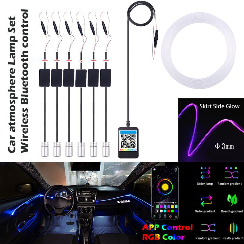 RGB салонное освещение автомобиля, беспроводное приложение, управление Bluetooth, оптоволоконная лента, атмосферная лампа, автономное подключение