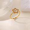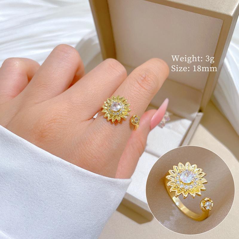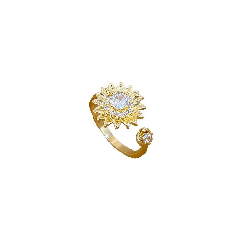 Кольцо из настоящего золота, роскошное, с цветком и полностью бриллиантовое, открытое, регулируемое, простая ювелирная бижутерия, японское кольцо, парное кольцо