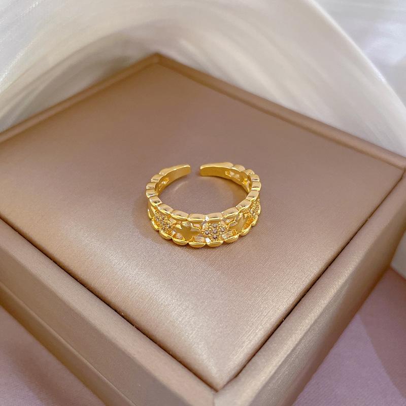 Real Gold Light Luxury Lucky Flower Ring Opening Adjustable Simple Jewelry Japanese Ring Couple Ring