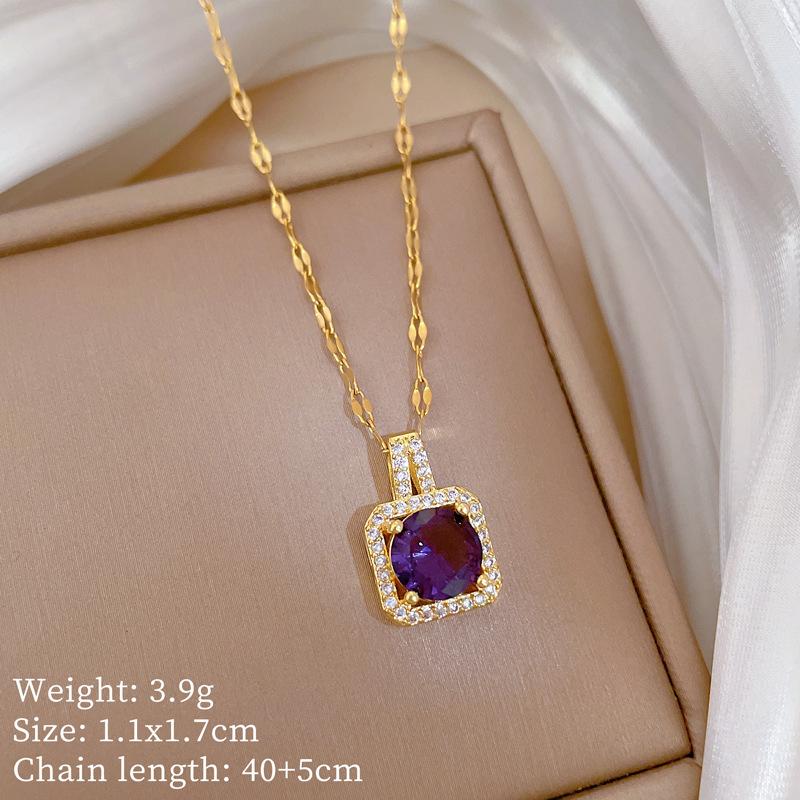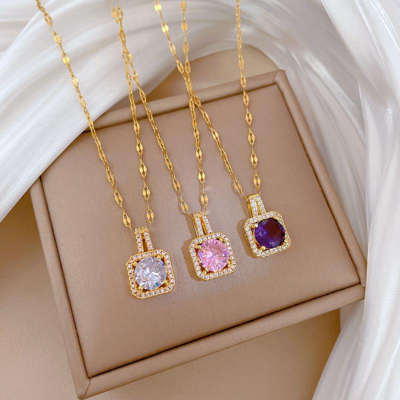 Titanium Steel Korean Fashion Square Diamond Necklace Female Smart Zircon Geometric Pendant Item Jewelry