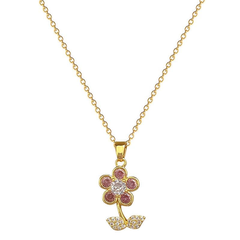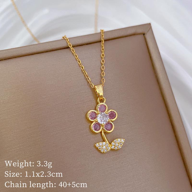 Leaf Five-Petaled Flower Light Luxury Temperament Gorgeous Full Diamond Necklace Female Versatile Collarbone Chain Titanium Steel Chain