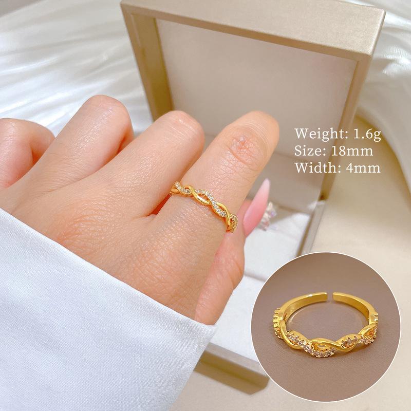 Медное кольцо с микроинкрустацией цирконием, Женское модное персонализированное кольцо, Кольцо на указательный палец, Тот же простой и холодный стиль
