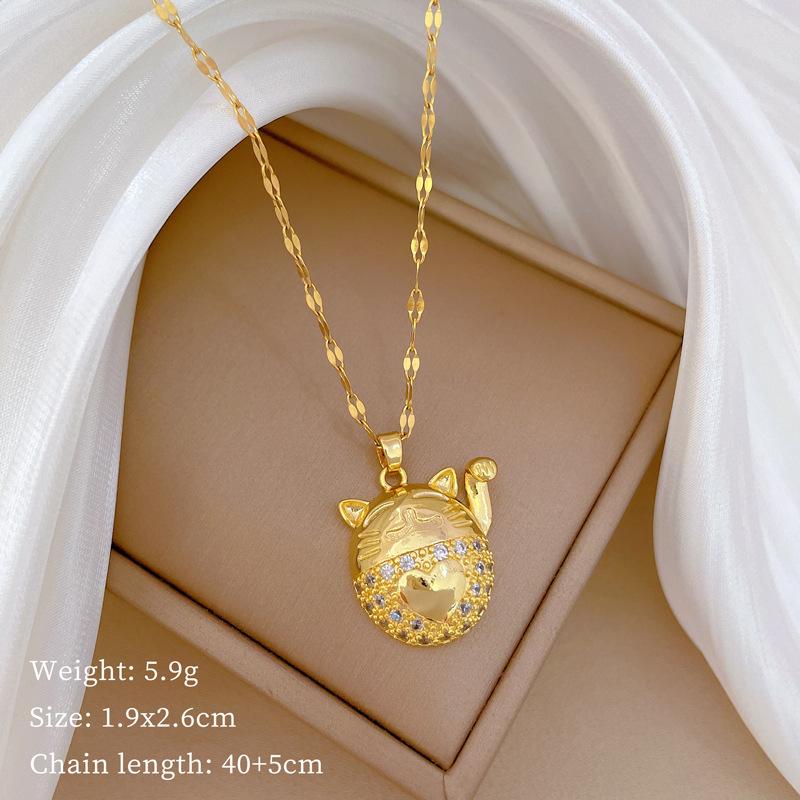 Счастливый Кот Светлая Роскошь Темперамент Великолепное Полностью Алмазное Ожерелье Женская Универсальная Ключичная Цепочка Титановая Стальная Цепочка — купить товар онлайн с бесплатной доставкой по всему миру!