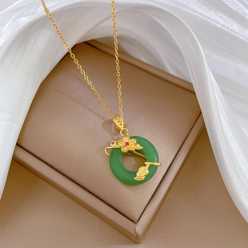 Цветочный нефритовый кольцо Темперамент Микро бриллиант Ожерелье Женский Переносная бусина Цепочка на ключицу С украшениями