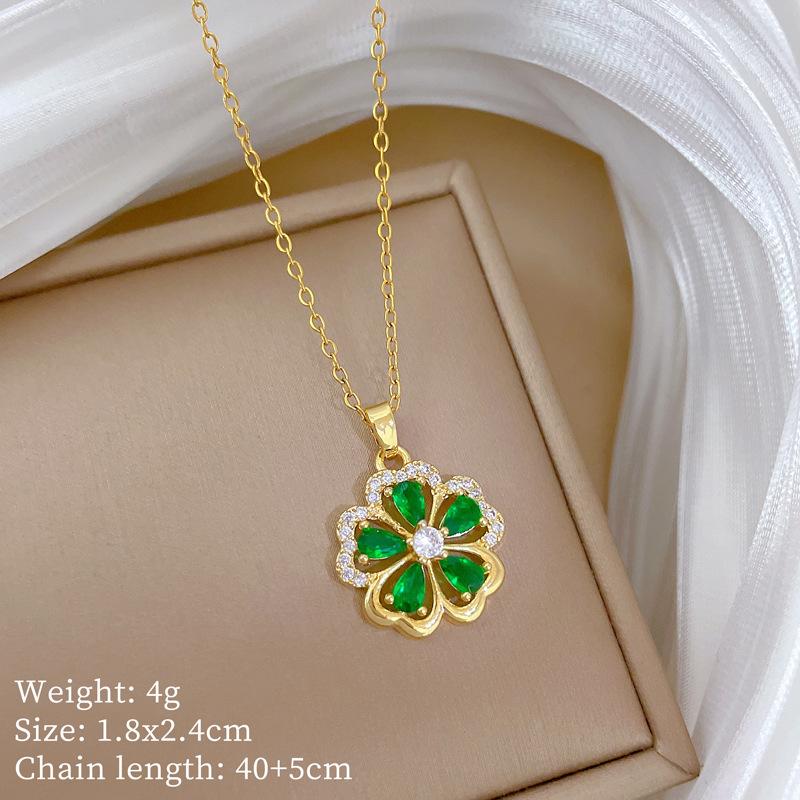 Цветок с пятью лепестками Зеленый Полностью Алмазный Легкая Роскошь Темперамент Великолепное Полностью Алмазное Ожерелье Женское Универсальное Ключица Цепь Титановая Сталь
