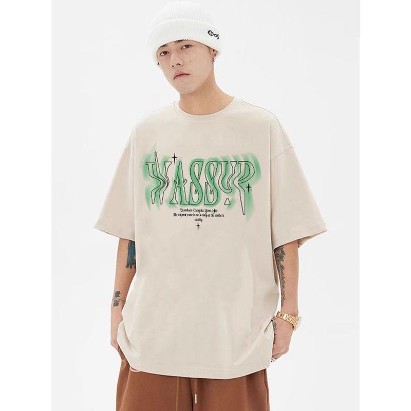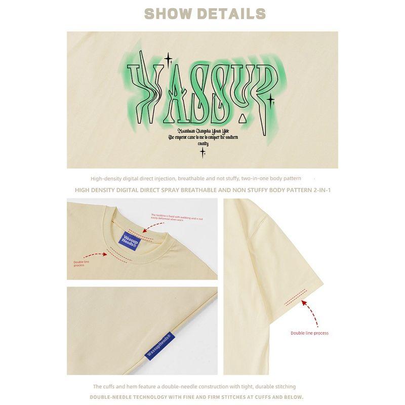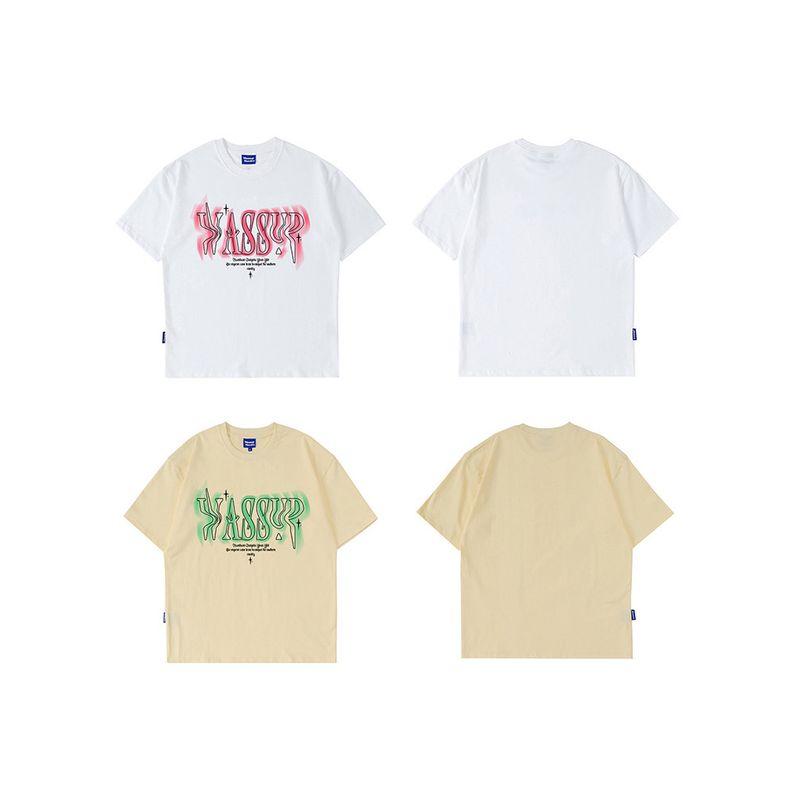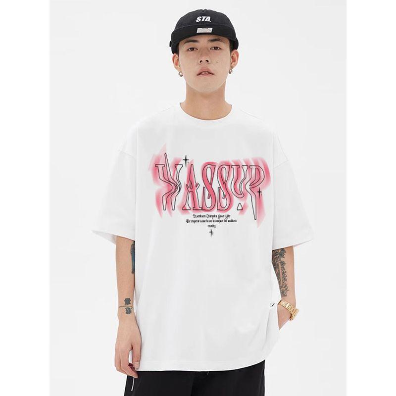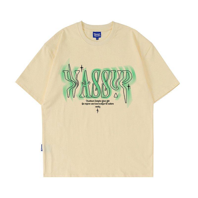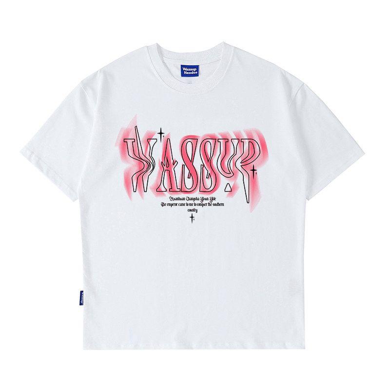Wassup Heods Twisted Font Short-Sleeved T-Shirt for Boys, Summer Loose-Fitting American Heavy-Duty Trendy Brand T-Shirt Top