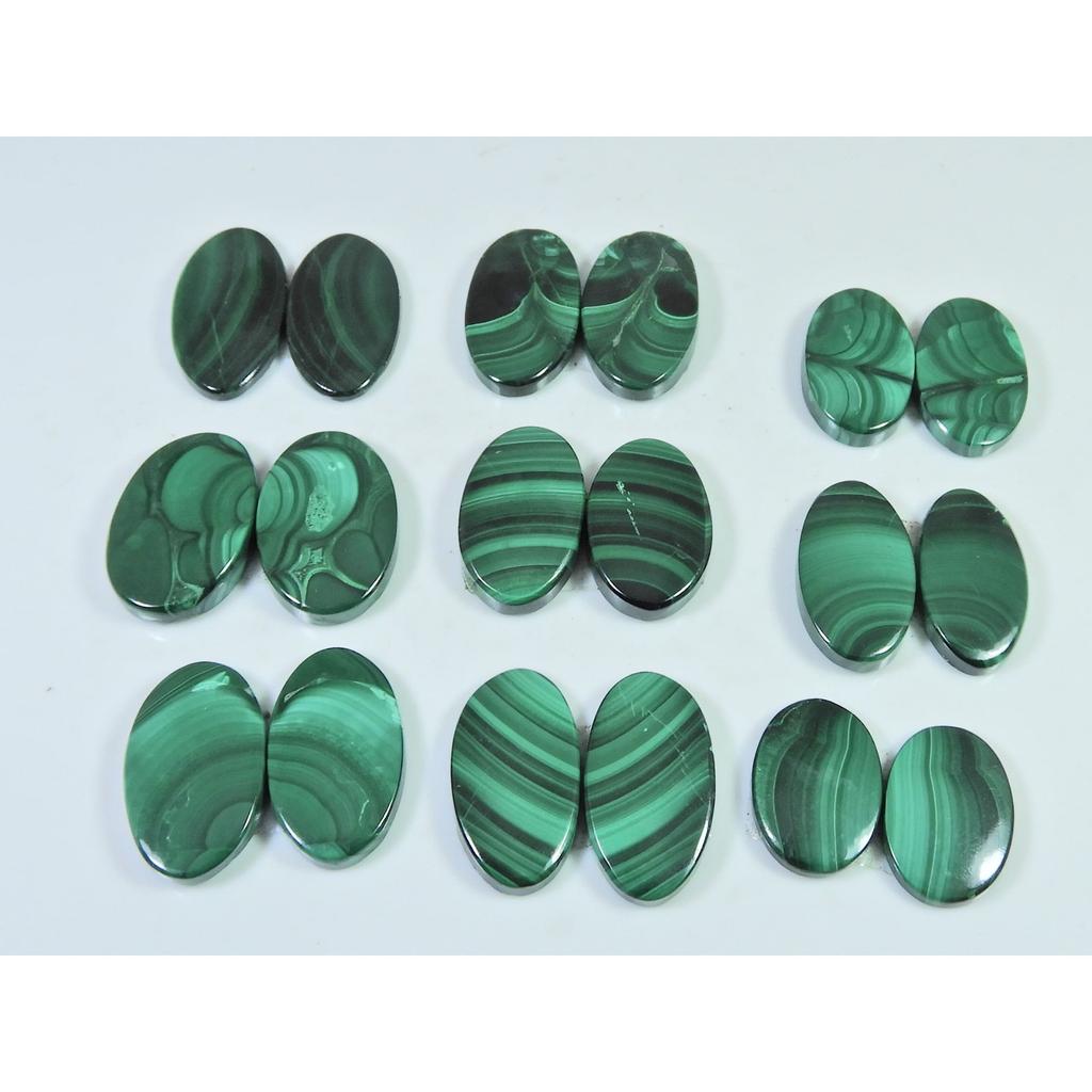 254 карата. Натуральный малахит, парный, овальный кабошон, рассыпной драгоценный камень, лот из 9 пар C-870