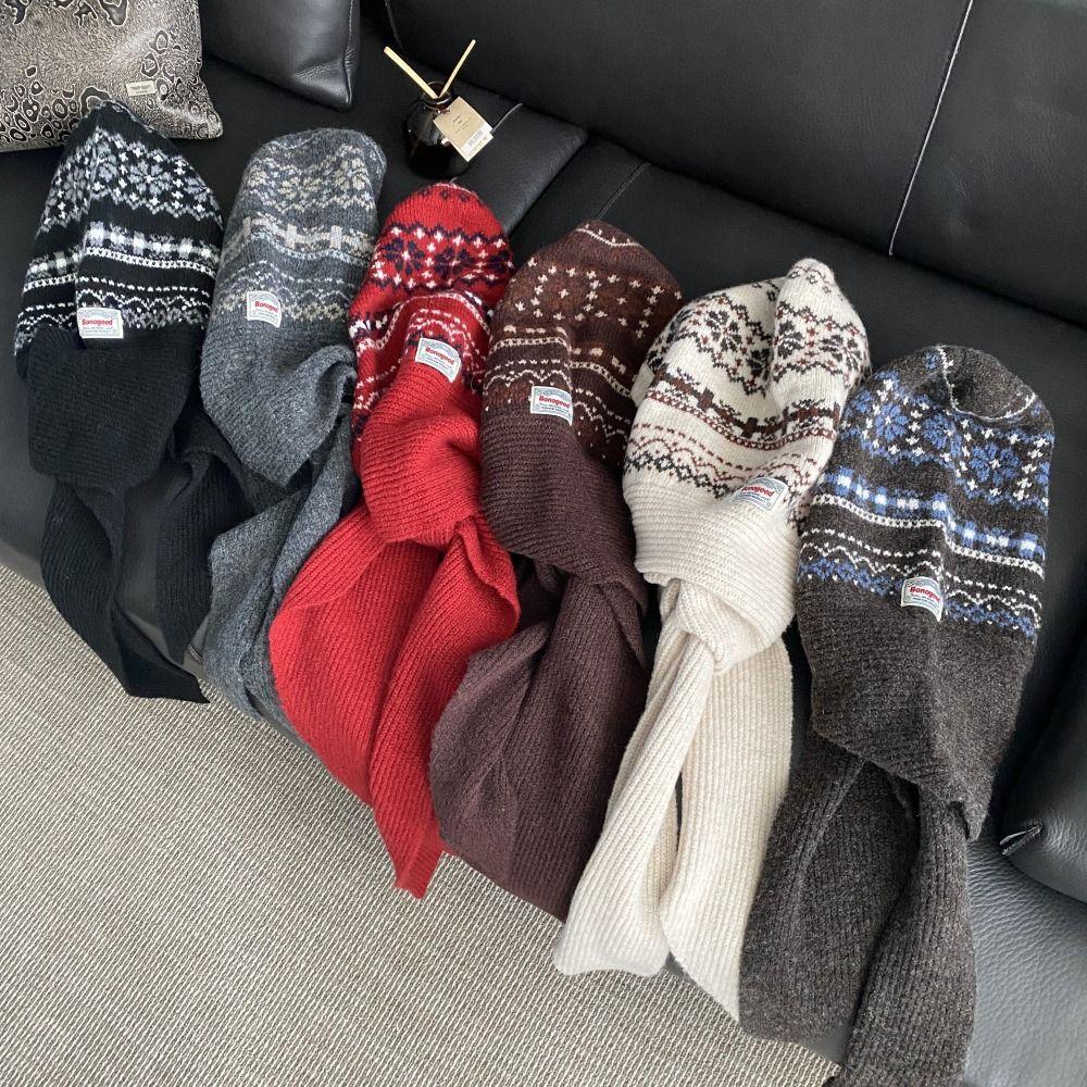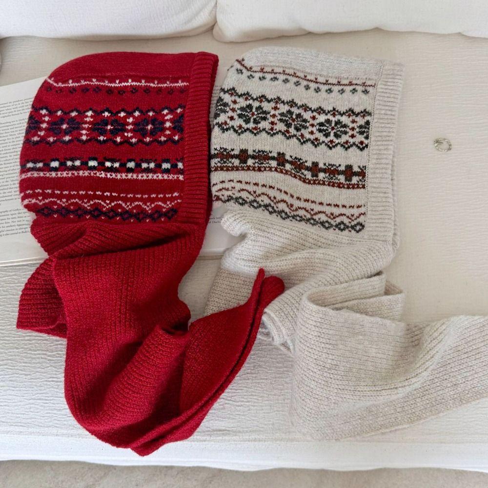 Scarf Cap Ear Protection Hat Fair Isle Style Knitted Hat Cute Jacquard Balaclava Hat Female/Girls