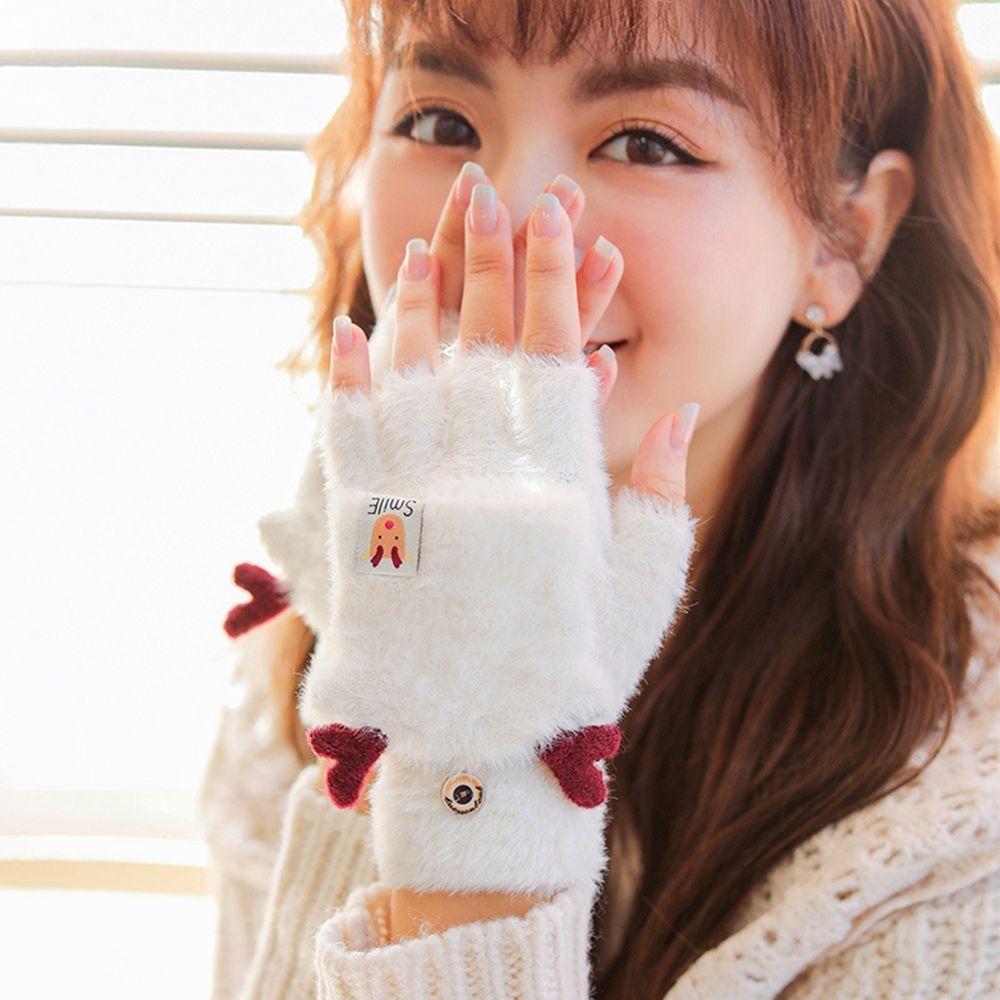 Перчатки Осень И Зима Рождественские Шерстяные Варежки Женские Перчатки Перчатки без пальцев Варежки-трансформеры