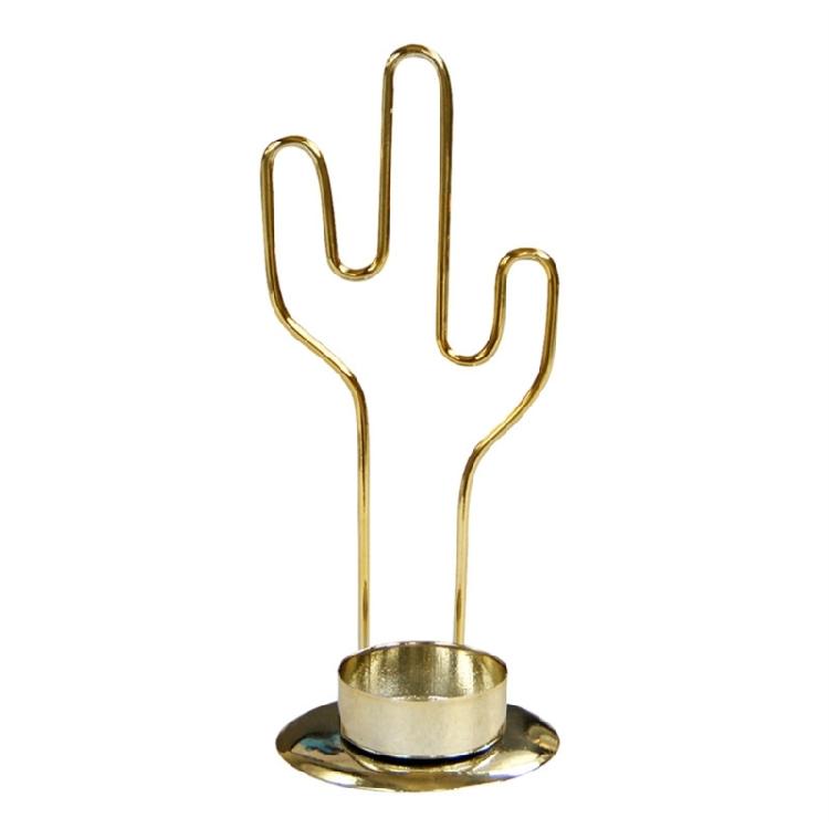 Golden Round Candle Holder Decorative Cactus Shape Iron Candlesticks for Parties