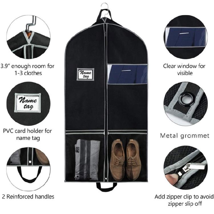 Heavy-Duty Garment Bag with Pockets, Portable Garment Bags for Hanging Clothes