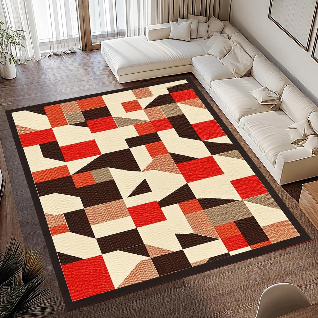 Ковер середины века Современные геометрические ковры Противоскользящий Машинная стирка Ковер Спальня Гостиная Ванная Комната Общежития Напольный коврик