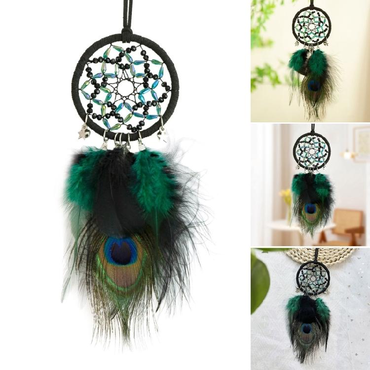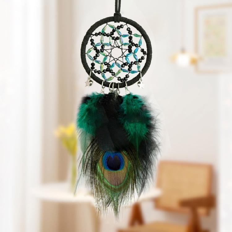 Decorative Dreamcatchers with Peacocks Feathered Handwoven Beaded Star Wall Hanging Ornament for Spiritual Home Accent