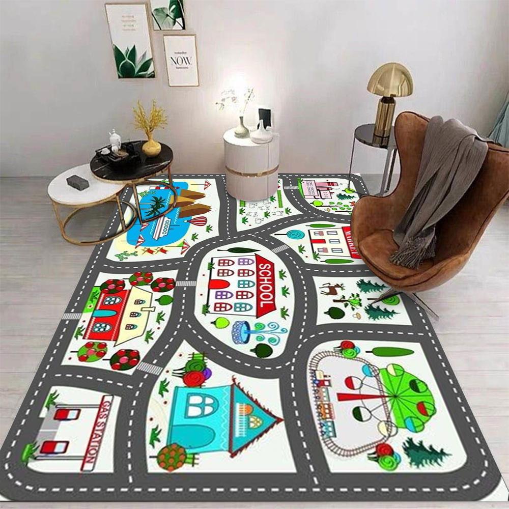 Ковер для игровой зоны с городским движением, игровой коврик для домика, ковер для раннего дошкольного образования или домашний диван, детская нескользящая напольная подстилка