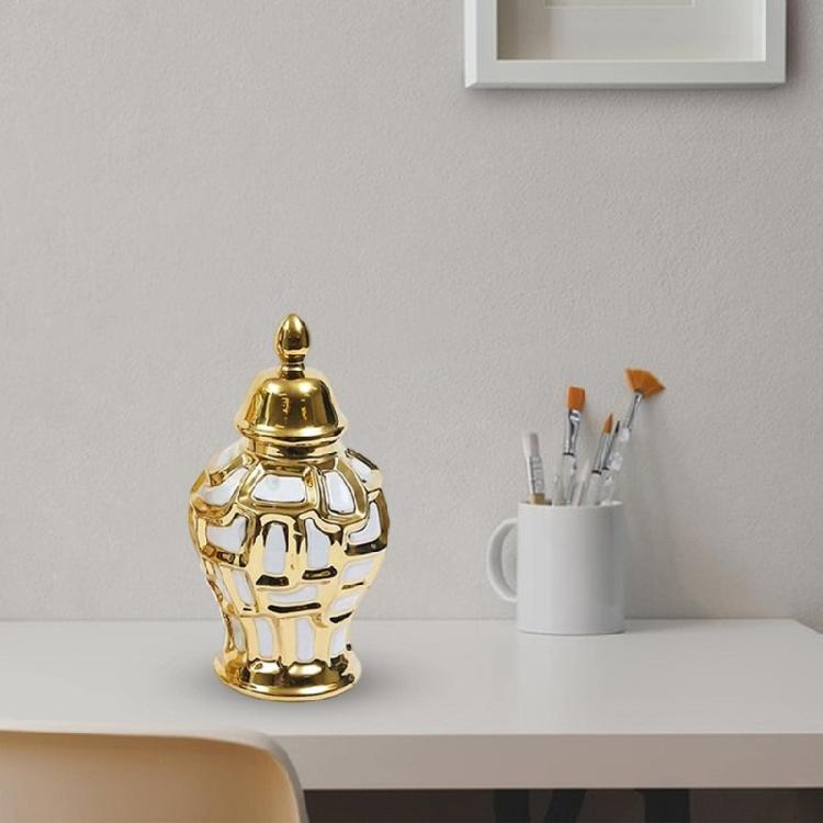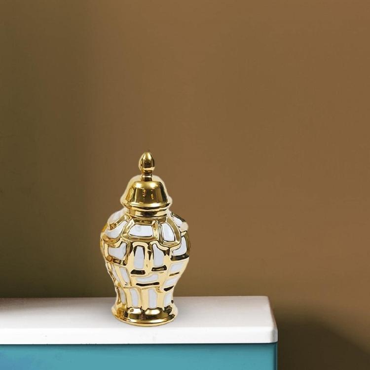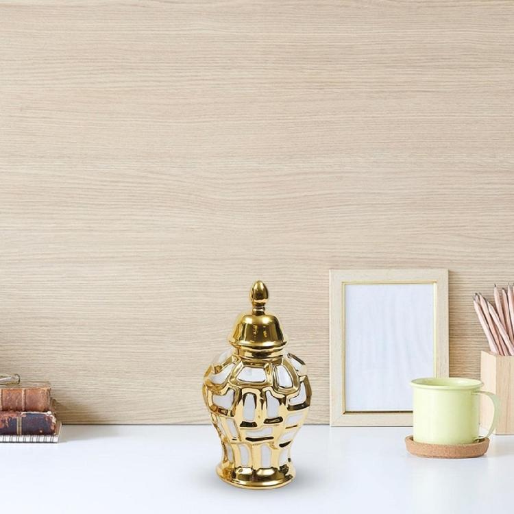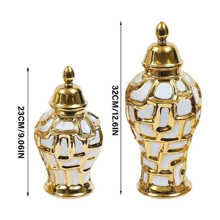 Ceramic Flower Vase Domed Lid Cosmetic Container with Electroplating for Home and Wedding Decorations Elegant