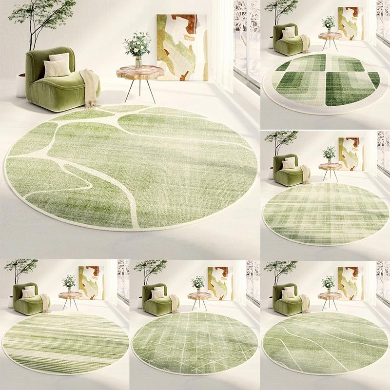 Зеленый круглый ковер для гостиной в стиле абстрактного линейного рисунка, свежий и минималистичный, домашний декоративный ковер, напольный коврик, устойчивый к пятнам