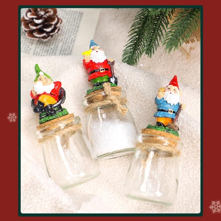 Christmas Themed Resins Dwarf Gnomes Figurine Candy Jar Glass Cookie Food Storage Container Table Decors Ornament Gift