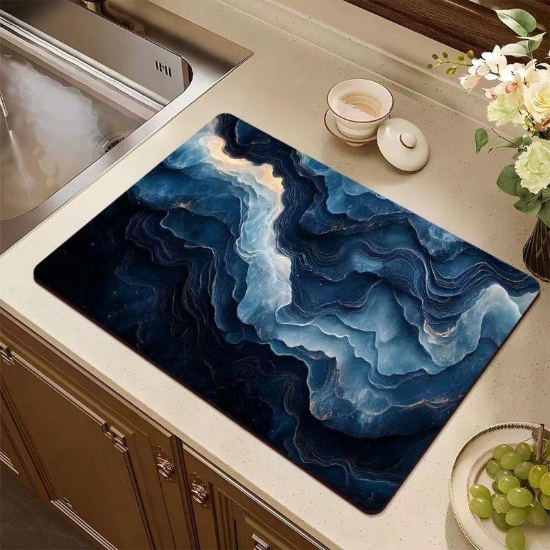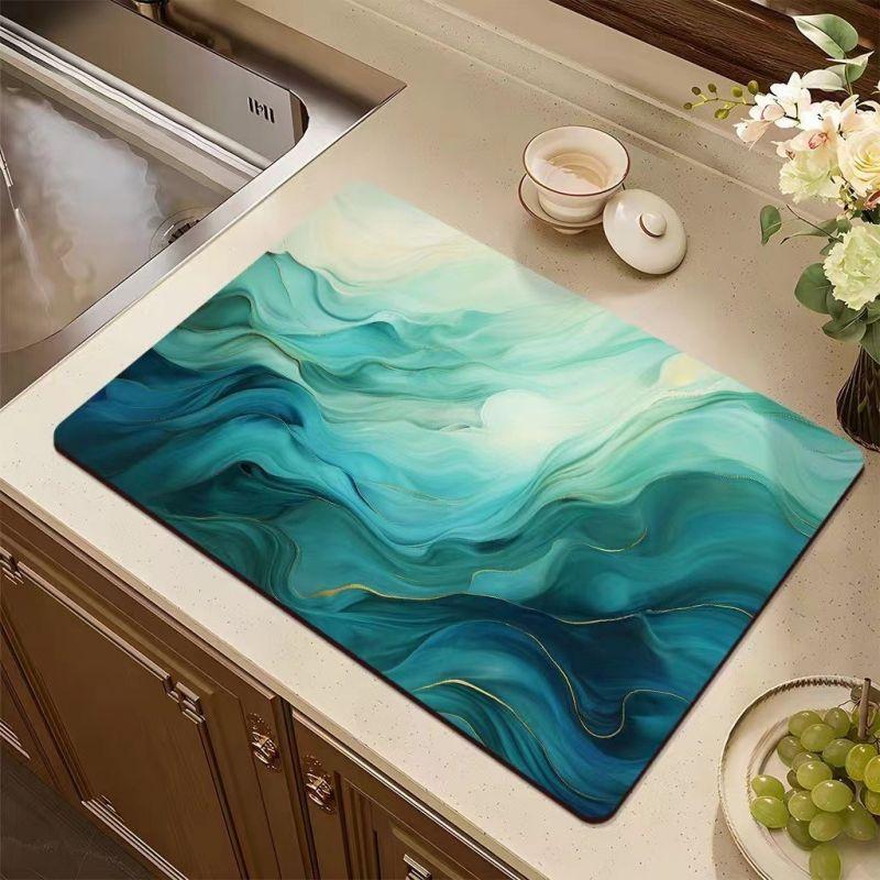 Многофункциональный коврик для посуды: Этот кухонный коврик для сушки белья можно разместить в любом месте, где вы хотите, чтобы он впитывал воду.