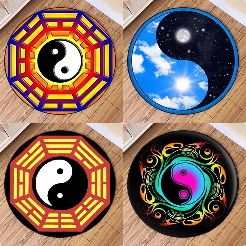 Round Carpet Tai Chi Pattern Circular Floor Mat for Living Room Bedroom Home Decor Easy To Clean Classic Beautiful and Beautiful