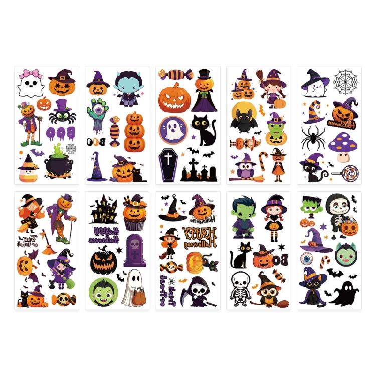 Set of 10 Temporary Stickers for Kids Halloween Themed Decals Costume Decoration Waterproof Body Art Accessories