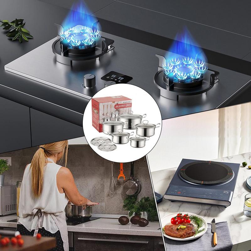 1 Набор Посуды из Нержавеющей Стали Многоцелевой Совместимый с Плитами Антипригарный Устойчивый к Царапинам И Безопасный для Посудомоечной Машины Принадлежности для Плиты