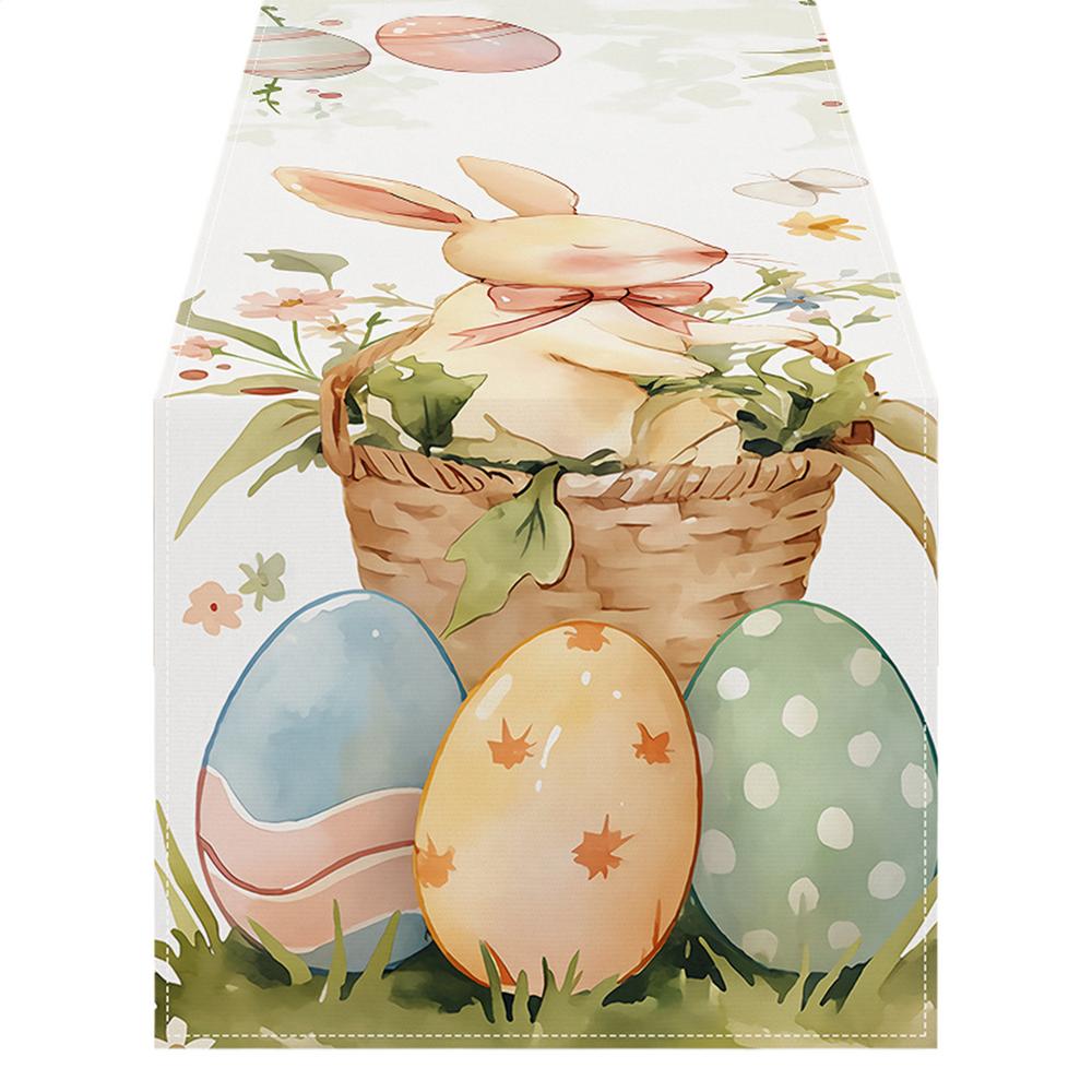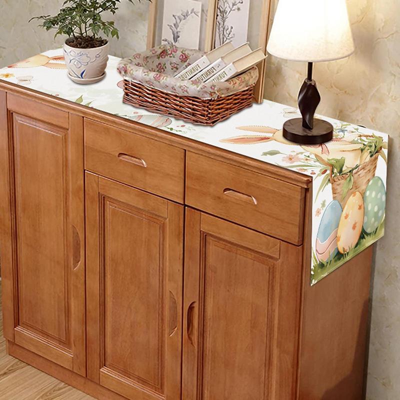Пасхальный кролик Скатерть Дорожка Льняная Кролик Яйца Принт Прямоугольная Ткань Подставка Моющаяся Пасхальное Украшение Для Дома Кухни