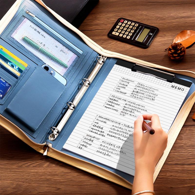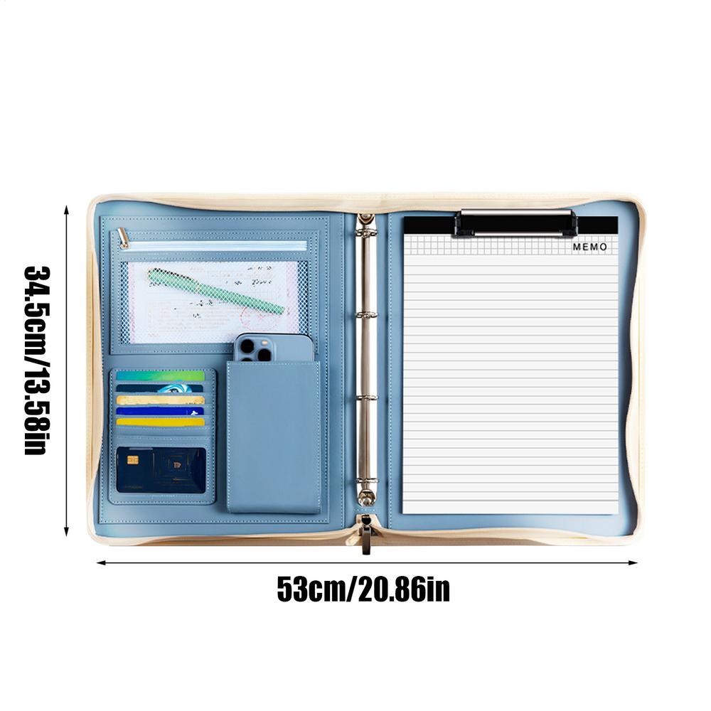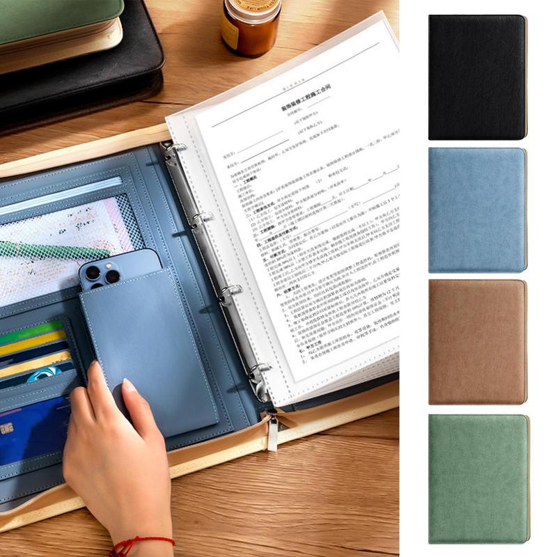 Многофункциональная кожаная папка Большая вместимость сумка-конверт на молнии PU портфель с блокнотом А4 и скоросшивателем Дорожная сумка для хранения