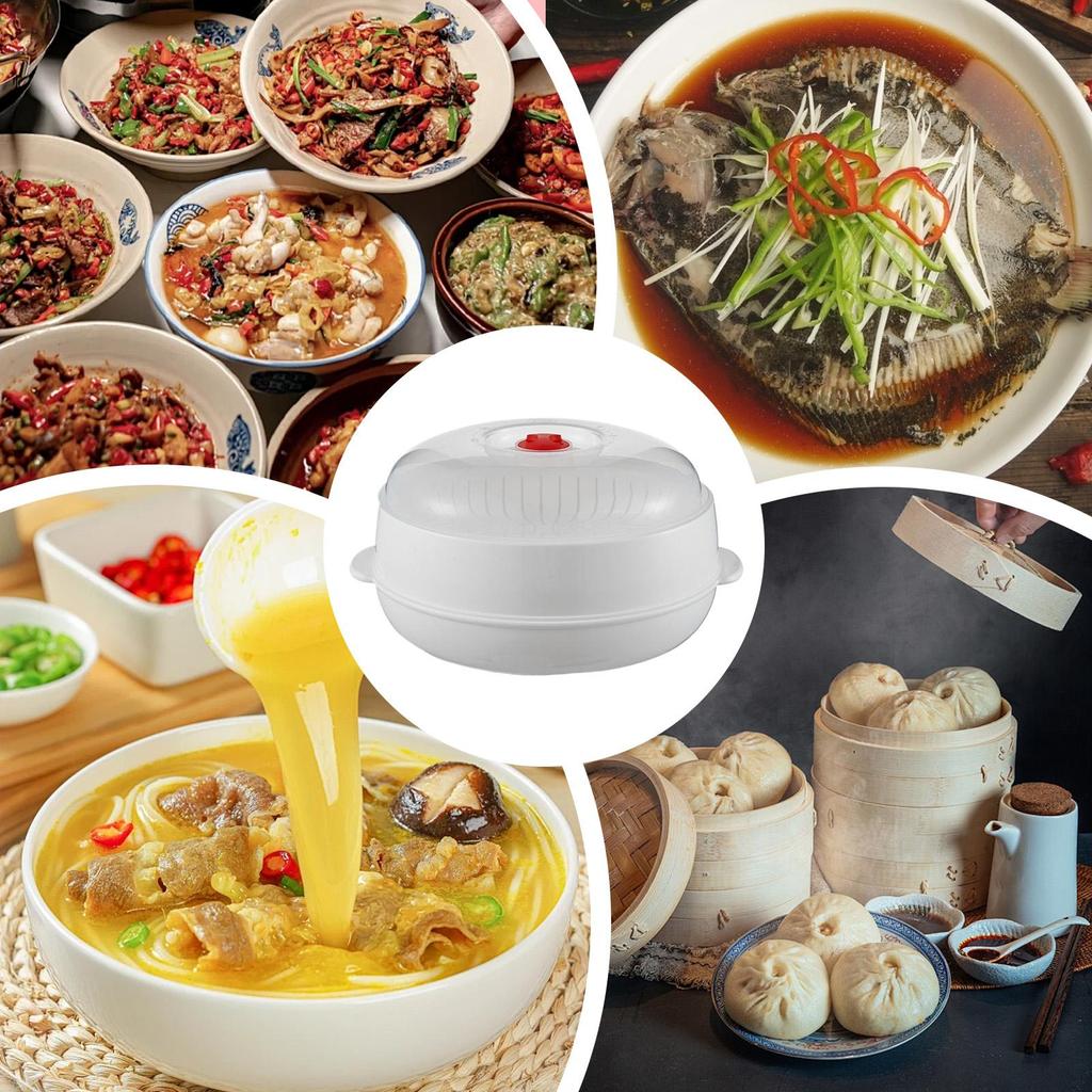 Microwave Steamer Food Steaming Cookware Microwave Steamer with Lid and Tray for Vegetable Rice Egg Dumpling Noodle Cooking