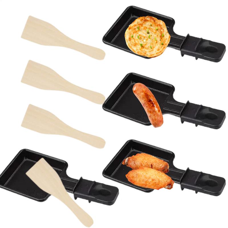 4PCS Raclette Pan with Non-Stick Coating with Insulated Handle and 4 Shovel Portable Cooking Tray for Melted Cheese Omelette — купить товар онлайн с бесплатной доставкой по всему миру!