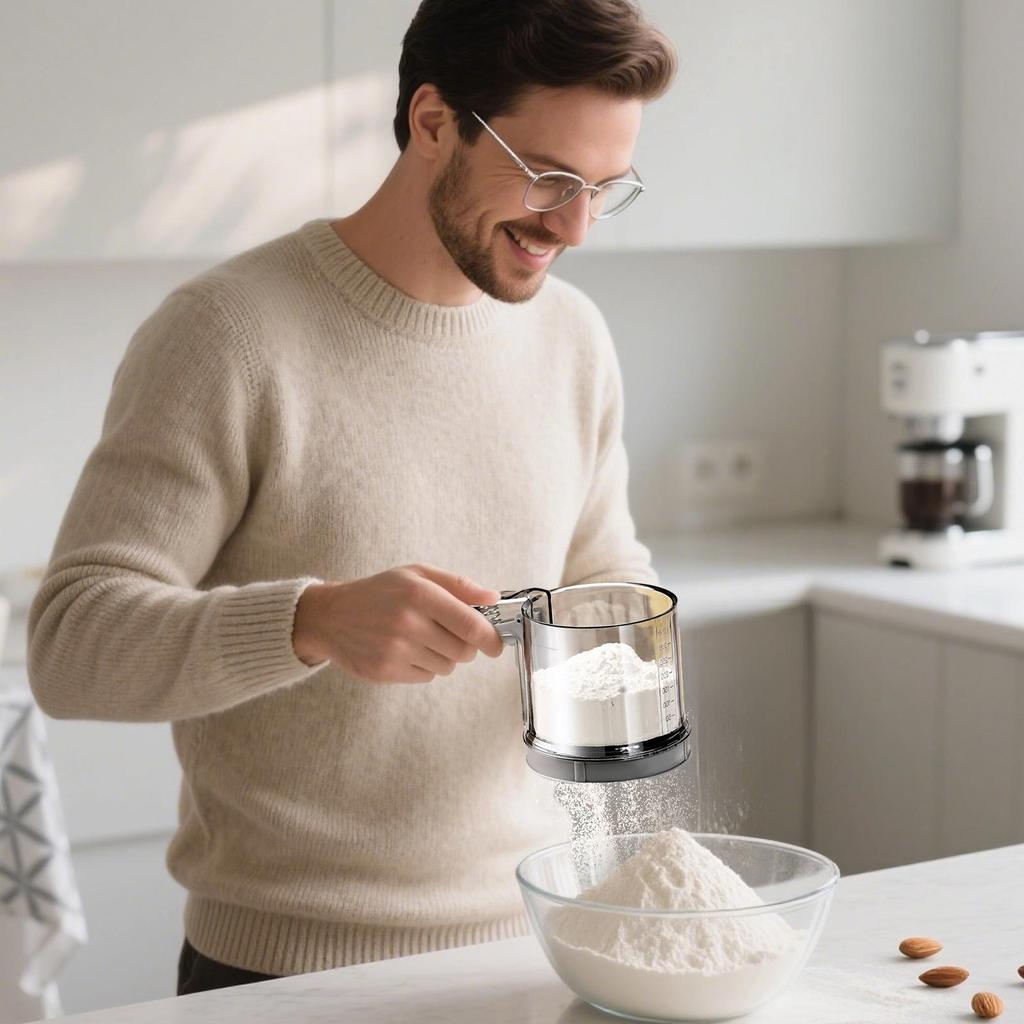 Semi-Automatic straight handle and press double layer Fine Mesh Flour Sifter Non-stick Baking Tools Kitchen Gadgets Accessories