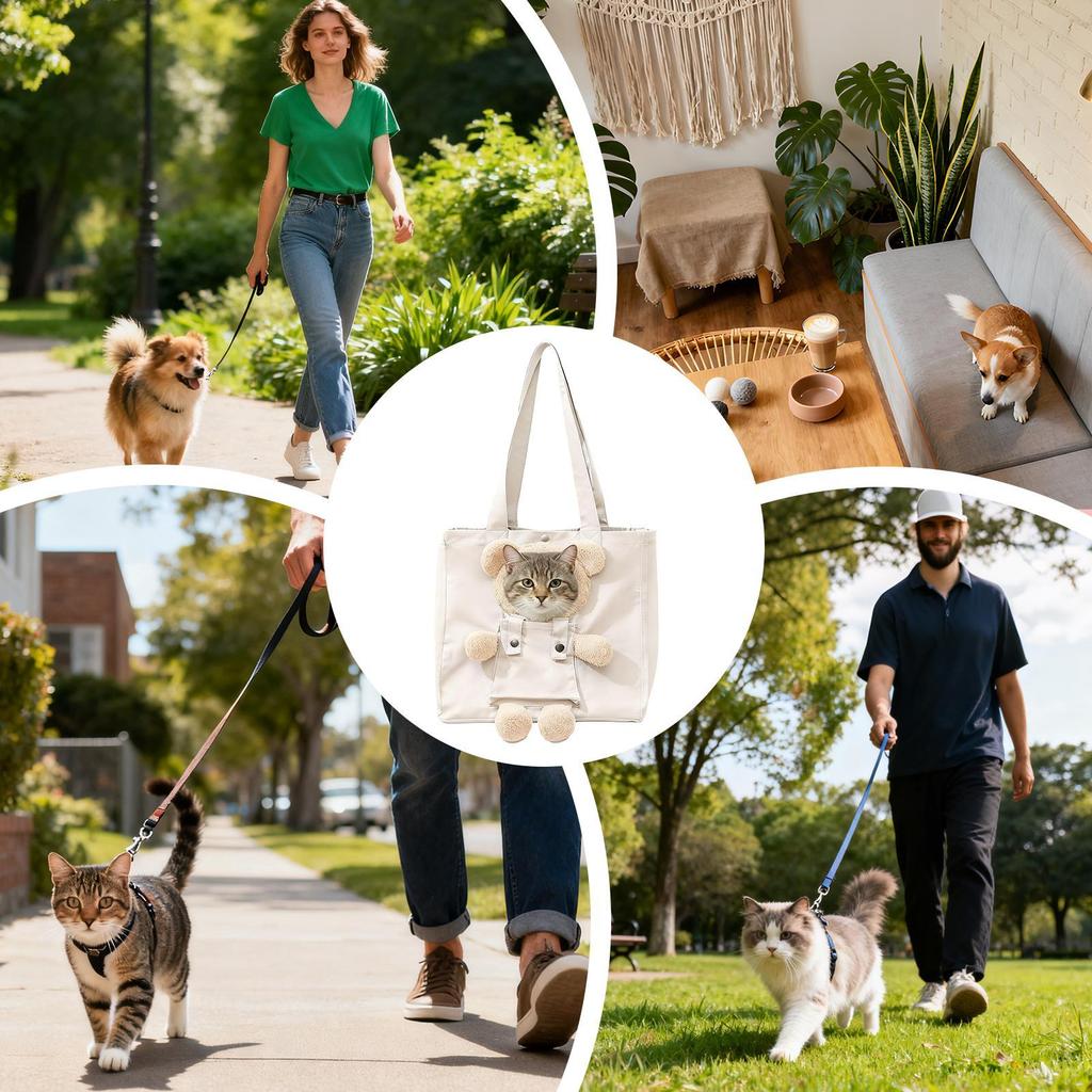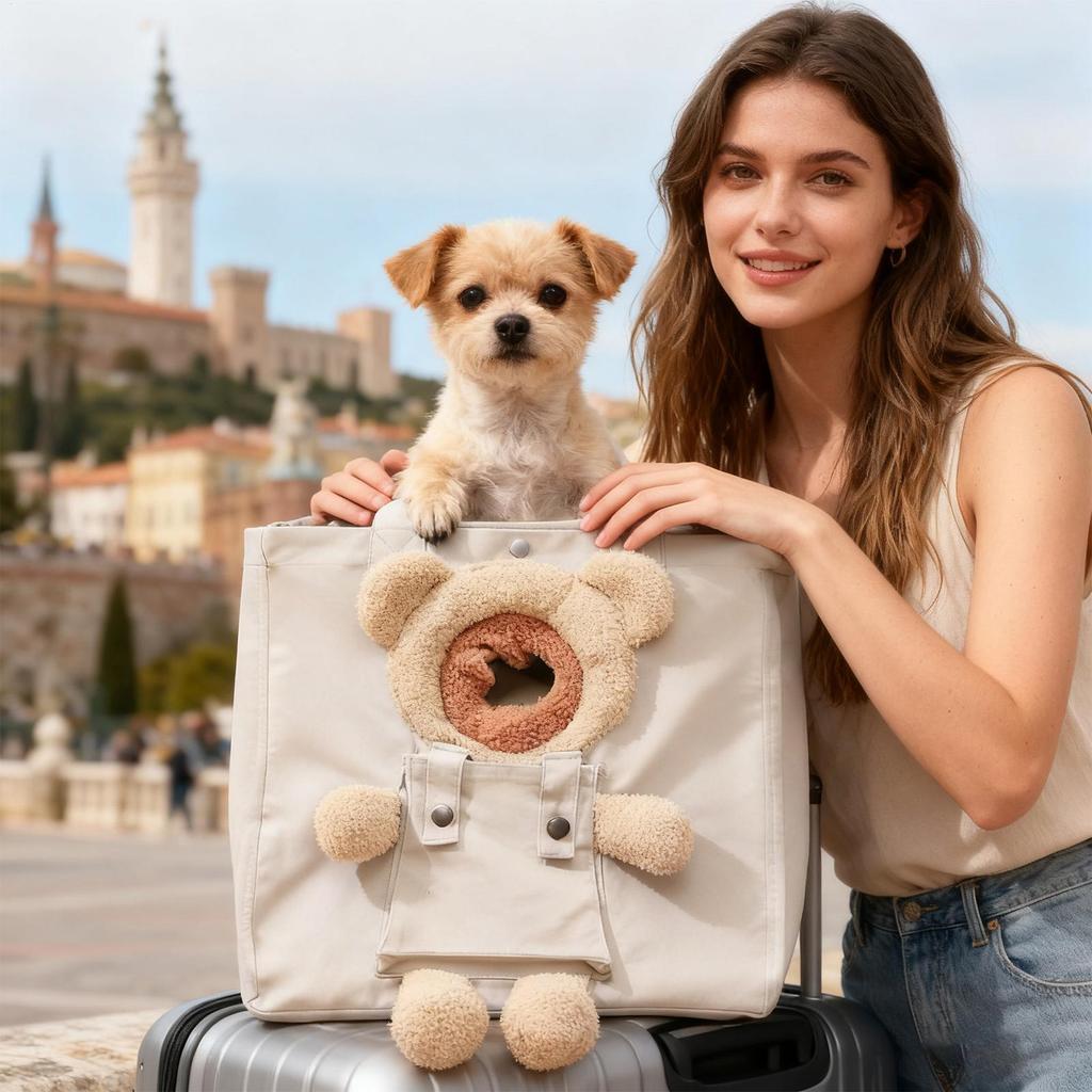 Cat Carrier Bag Bear-Shaped Puppy Carrying Handbag Canvas Pet Carrier Tote Bag For Outdoor Shopping Camping Daily Walks Short