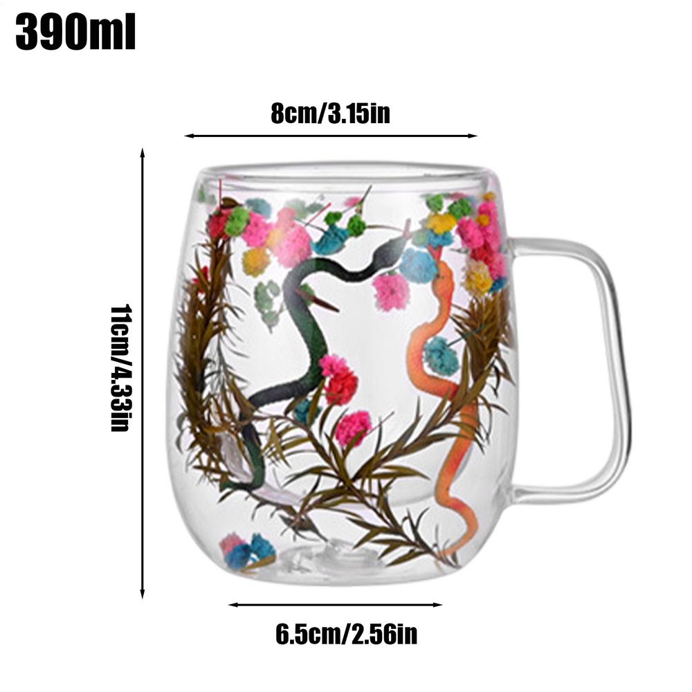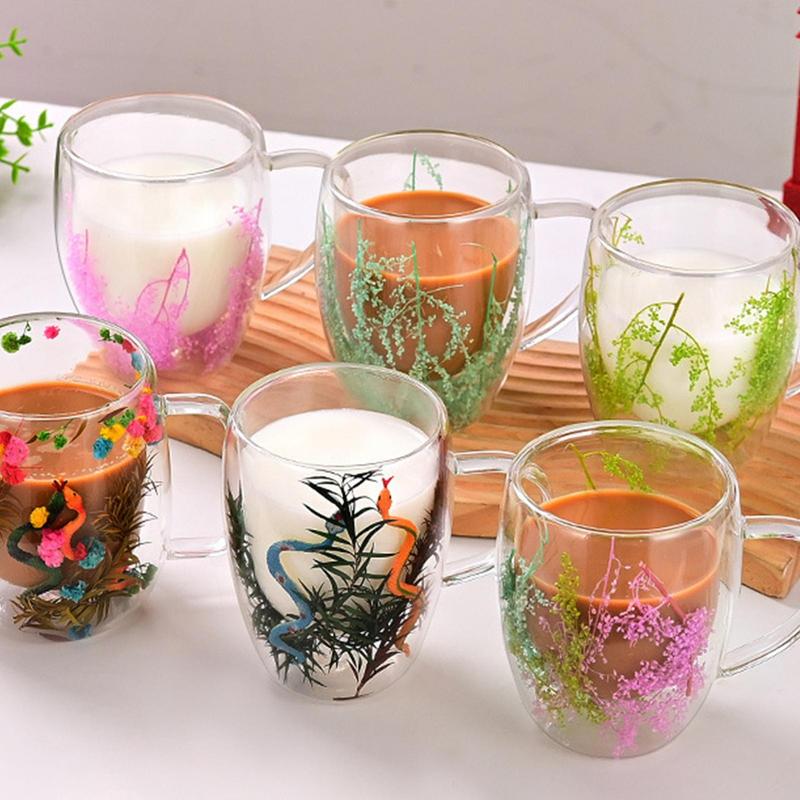 High-quality Double Dried Flower Glass Cups Creative Simplicitys High-temperature-resistant Glass Mug For Cappuccino Coffee Tea