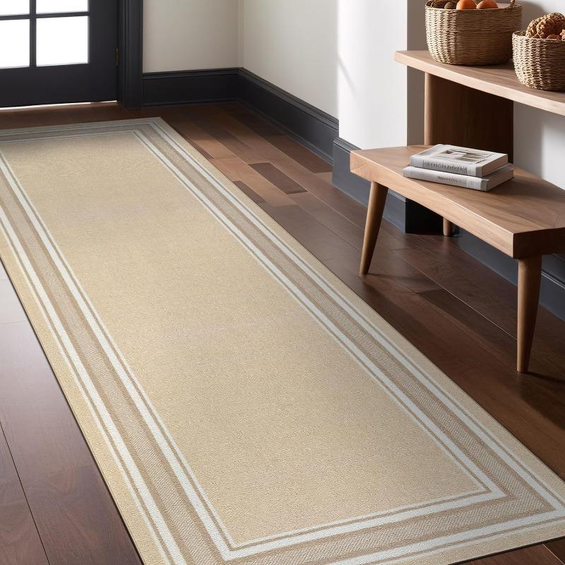 Однотонный Рамочный Ковер-Дорожка Ретро Этнический Стиль Простой Ковер для Спальни Коврик для Пола в Гостиной Прикроватный Край Дивана Домашнее Украшение