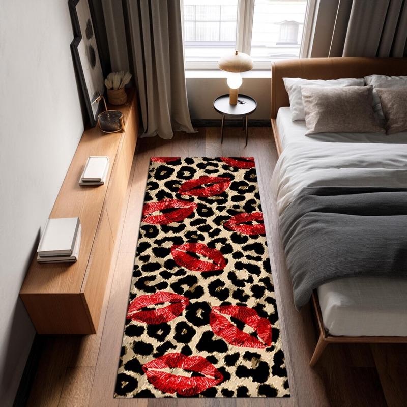 Leopard Red Lips Runner Rug Abstract Love Valentine's Day Carpet Valentine's Day Romantic Atmosphere Home Decoration Carpet