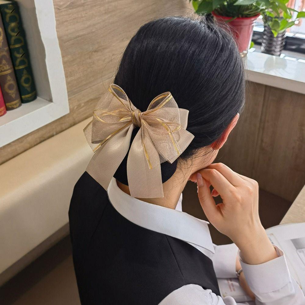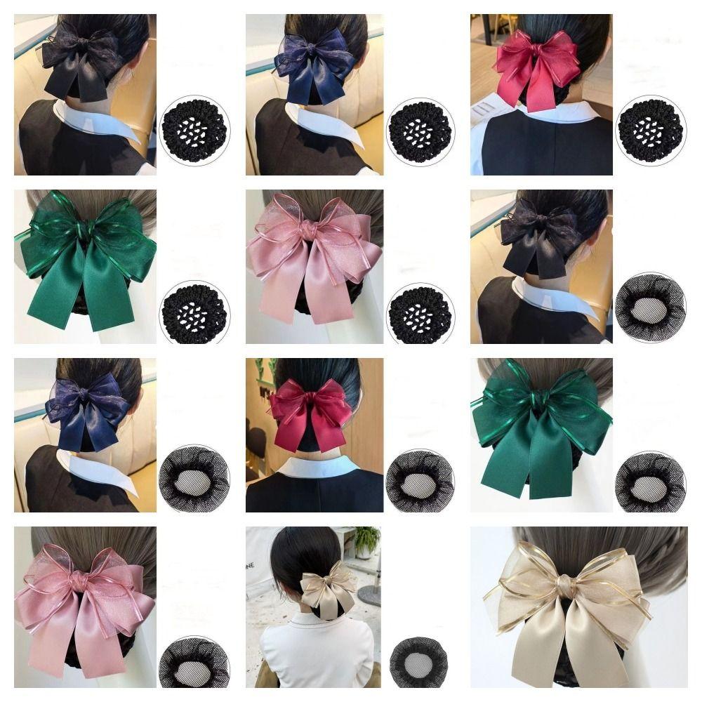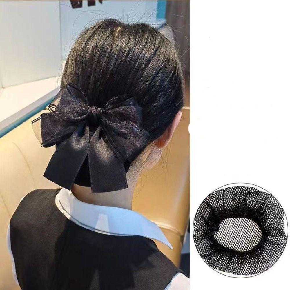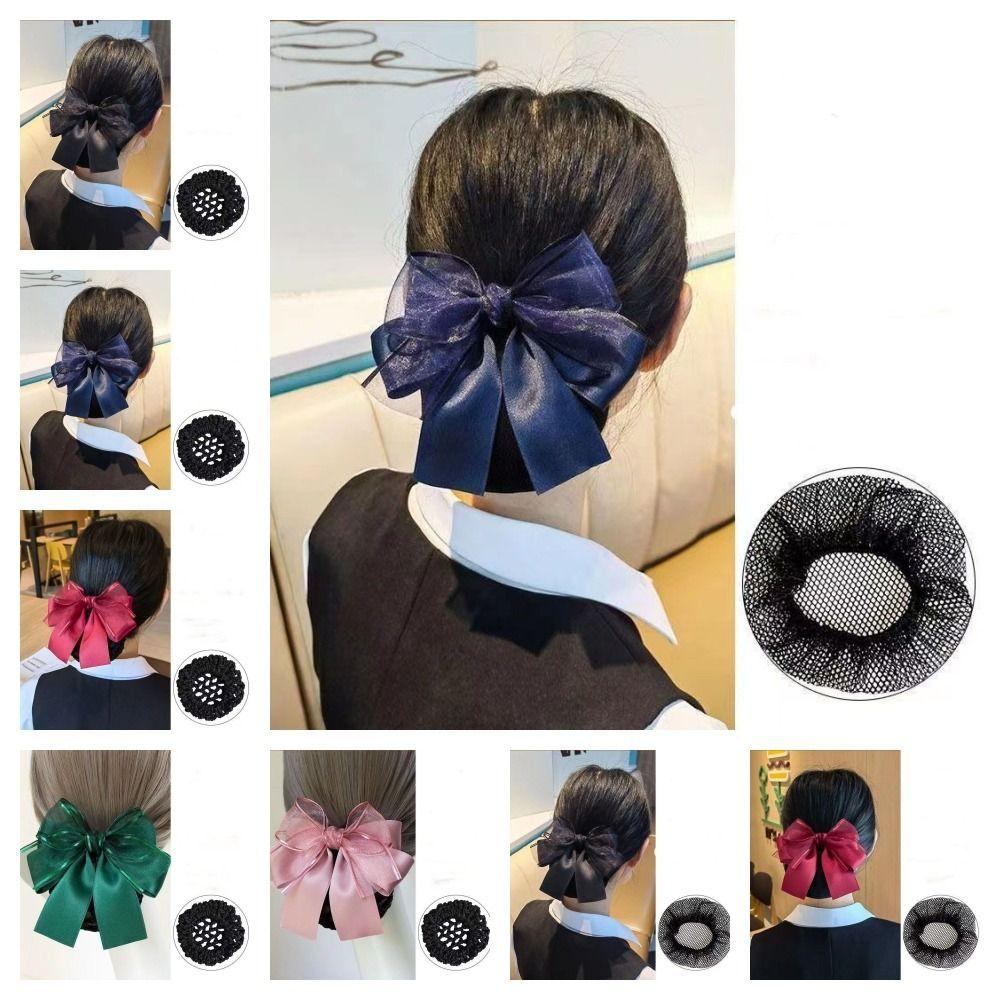 Bow Bowknot Hair Bun Women Spring Clips Hairgrips Cover Net Sweet Korean Bun Snood For Girls