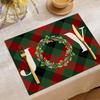Christmas Xmas Snowflake Table Mat Red Green Plaid Holly Wreath Festive Placemat for Holiday Table Christmas Dinner Party Decor