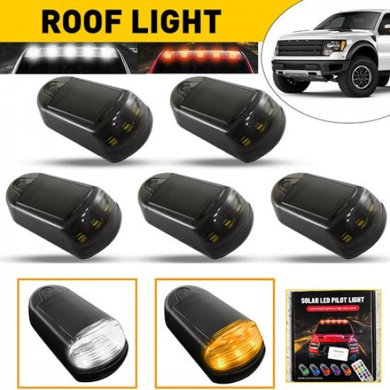 5PCS Roof Cab Signal Light White/Amber DRL Solar Universal Powered 4 Mode Smoked