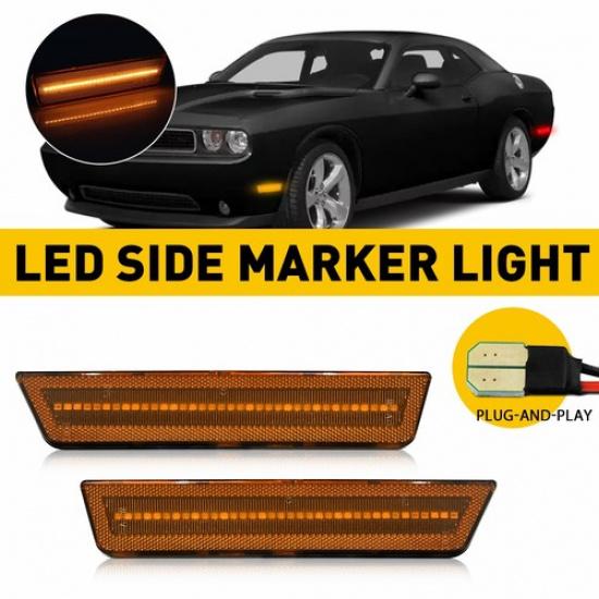 2PCS Amber Lens + LED Front Bumper Side Marker Light For Dodge Challenger 15-22