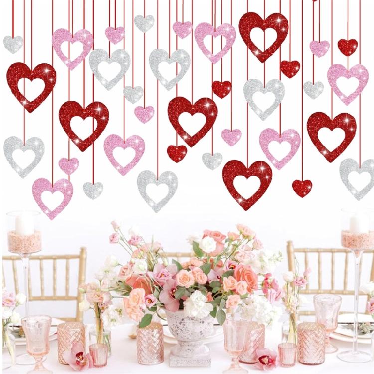 Эти подвесные украшения в форме сердца, украшенные пайетками и выполненные из бумаги, идеально подходят для Дня святого Валентина. Их легко разместить в любом месте, что позволяет гибко адаптировать их под различные интерьеры.