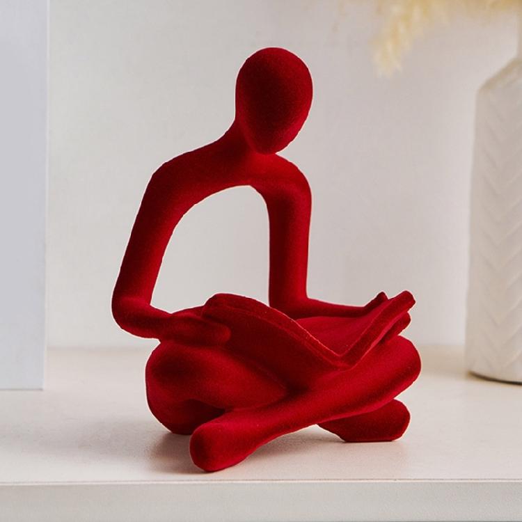 Abstract Flockeds Thinker Statue Resins Art Sculpture for Modern Home Decoration on Shelf or Desktop