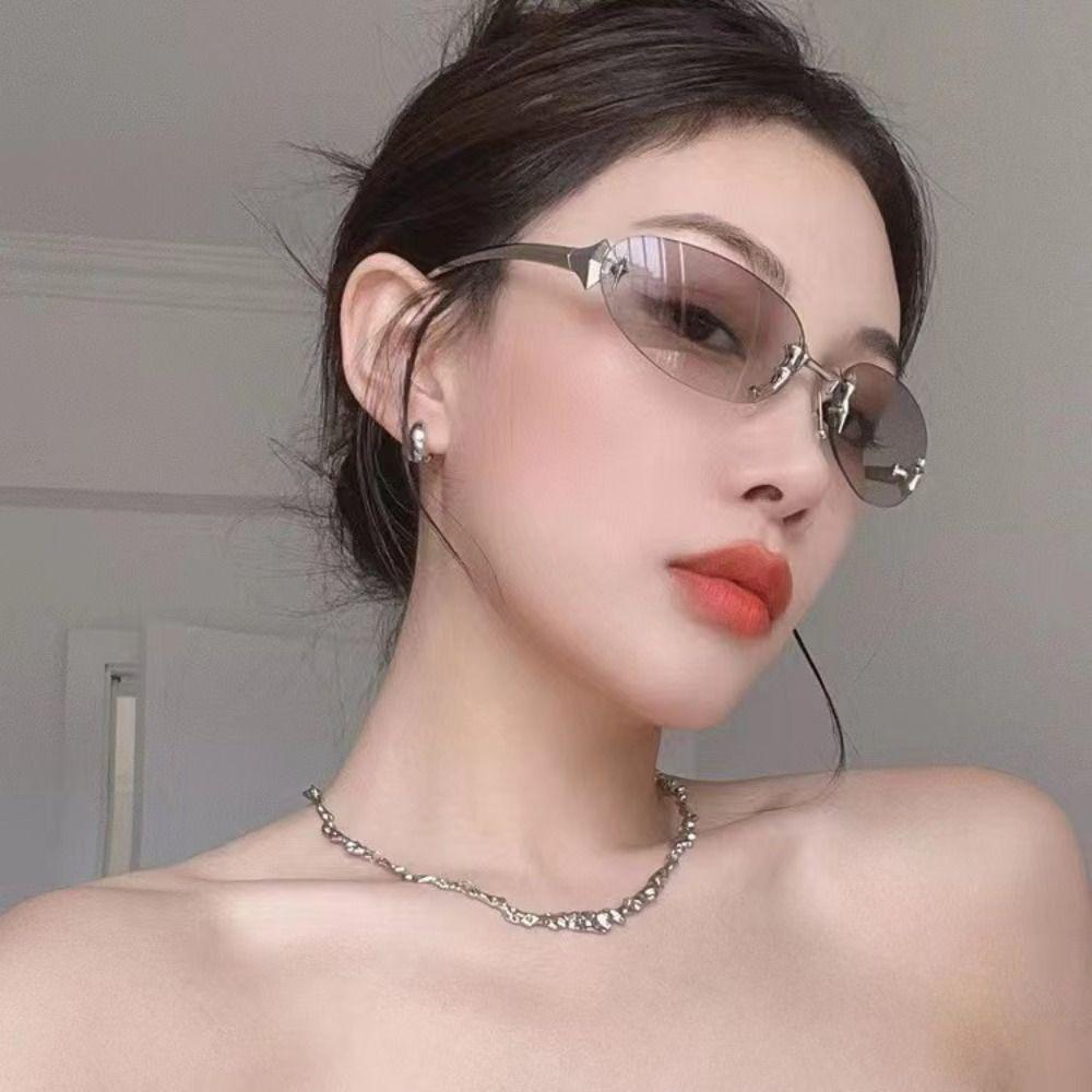 UV Protection Retro Eyeglasses Y2K Style Decorative Sun Glasses Cool Frameless Sunglasses Holiday