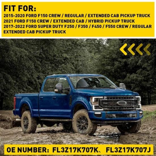 Interchange Part Number: 30309, AM-3836920719, TR00577, 1AMRG00255, fits F 150 F-Super Duty F 250 / F 350 / F 450 / F 550 Crew / Regu, for Telescopic Dual Glass with Turn Signal Towing Mirror, W/Base, W/Heated, Wide View Convex Glass, Clip On Type