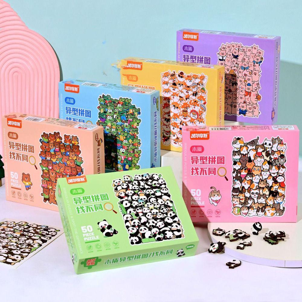 Wooden Animal Cat Jigsaw Puzzles Irregular Shaped Animal Shape Puzzles Desk Decoration
