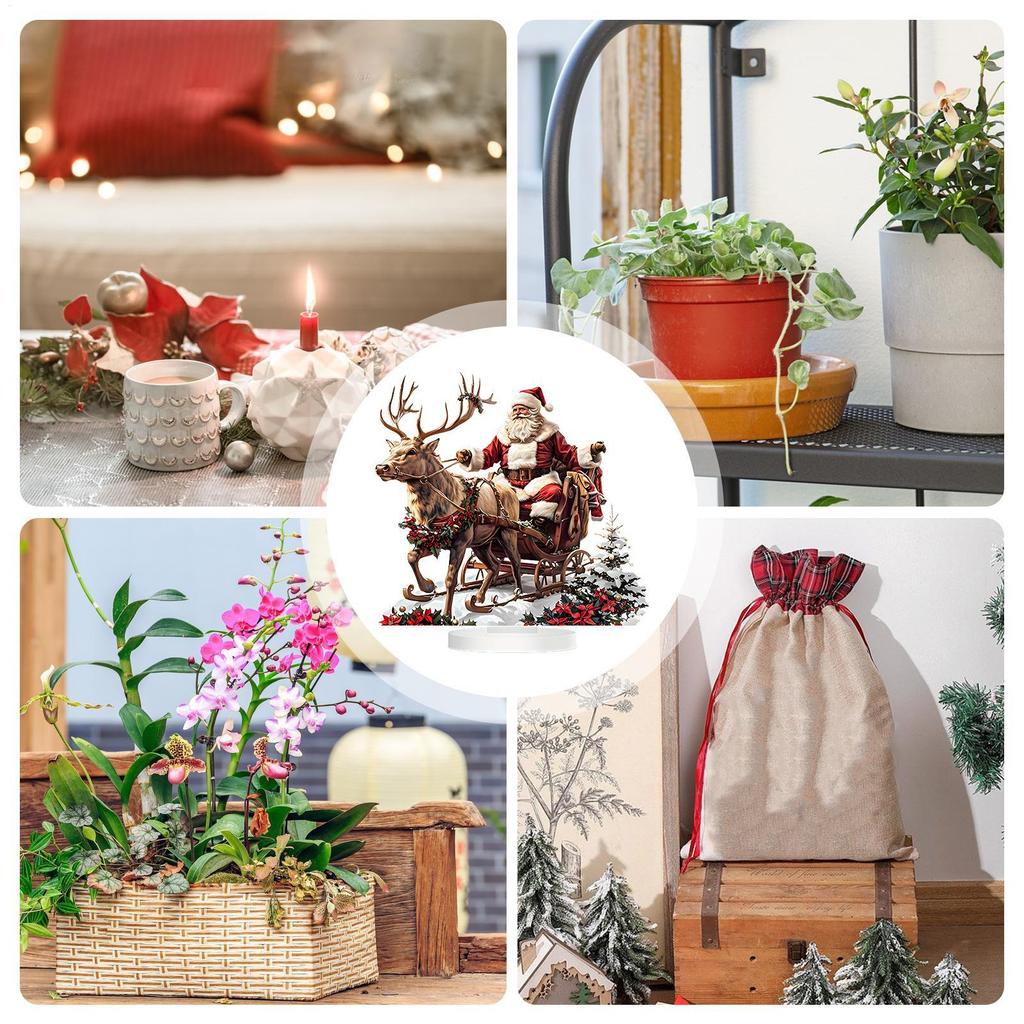 Рождественские сани с оленями, фигурка Санты, 2D акрил, Рождество, Санта-Клаус на санях с оленями, украшения, праздничный Санта